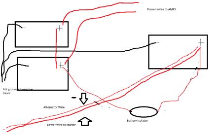 Thanks for the advice it does sound like a run on sentence. I'm not aware of a combiner relay in the system what does it look like? Will the battery isolator not allow the extra current flow thru it to the stereo battery's once the first battery is charged?
