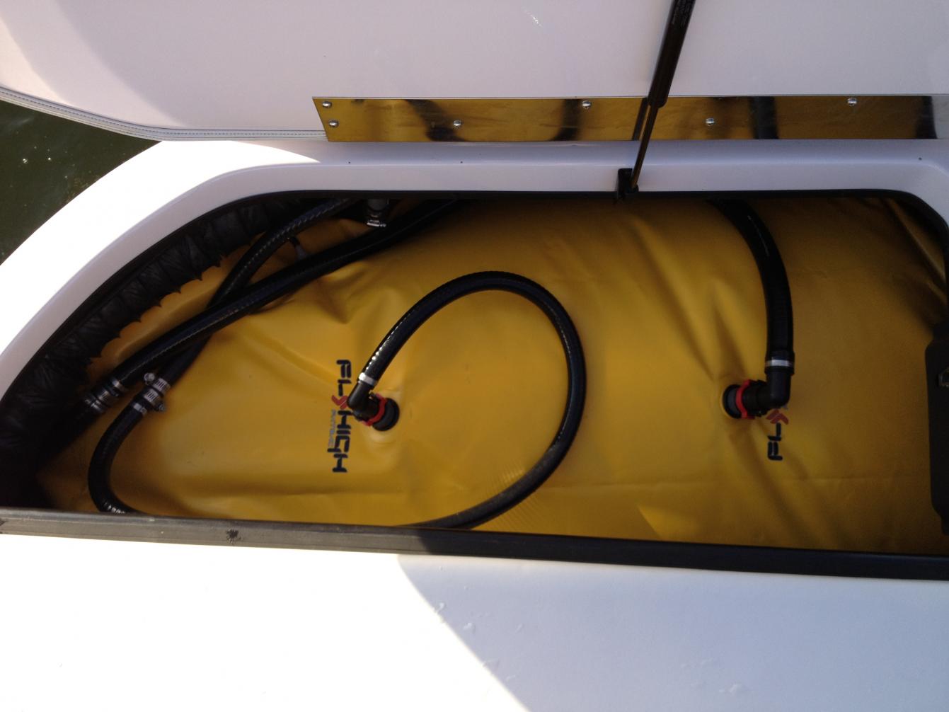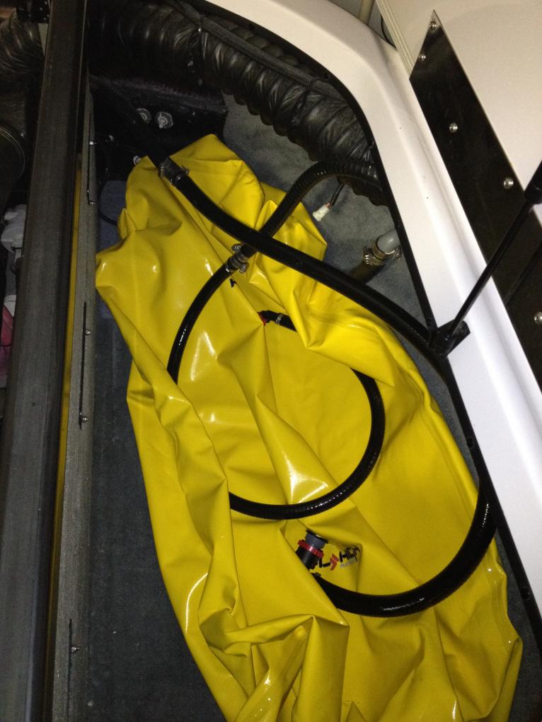 I have (3) Johnson Ultra Ballast Pumps each filling and draining with their own 1" thru-hull wired with solenoids off of the factory dash switches. They belly pump handles the 650lbs Integrated Bow Sac as well as a 580lbs Center Locker Sac through my own valve system that I put under the helm. I have 750lbs sacs in each rear locker. On the right side I plumbed in a hose with a valve that lets me hook up a 400lb surf sac behind the driver to the right pump for surfing.