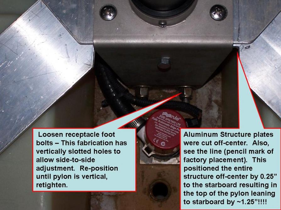 Does anyone know if the removable ski pylon (200V) mounting structure (in the floor) is adjustable? Noticed my pylon is leaning off center to starboard.