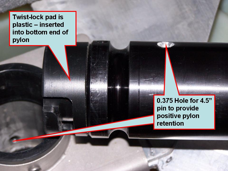 I have way more confidence than I did before the repair/mod. I'm confident I can now mount a boom with extensions and not have to worry...(hopefully I won't be made a liar very soon). The vertical force that a boom would put on the twist lock pin-to-plastic pylon foot has been diverted to a 3/8 thru pin that goes through both the pylon and the receptacle tube structure assembly. The existing 4-piece structure is pretty stout for fore and aft / side to side forces. Stay tuned...I plan to do some testing before it gets in the water.Originally posted by jeepn View PostSo after this repair, do you have confidence in using the pylon for a boom mount.Peace..