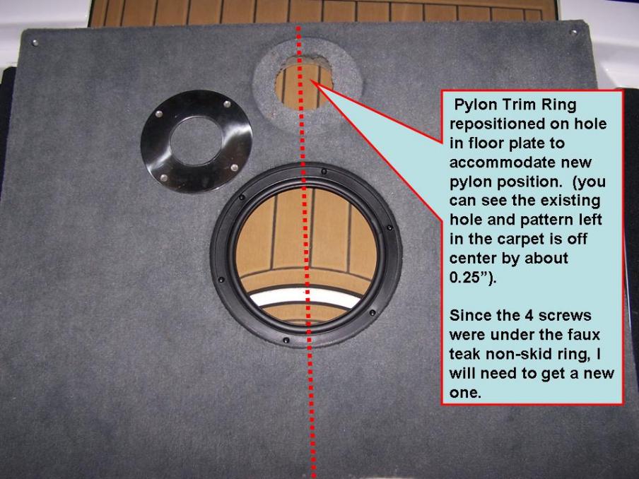 Trim ring re-positioned on pylon (notice how far out it was from prior position patterned into the carpet):