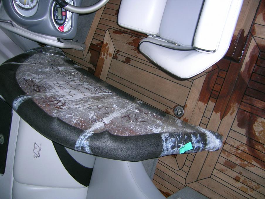 Here is a pic of the raw fiberglass floor and the cardboard template for the Seadek.