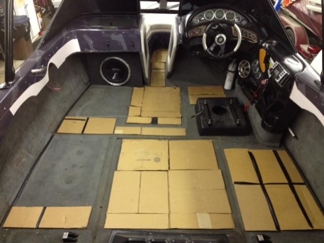 I'm in the middle of a big overhaul on my boat and while it's all torn apart I was thinking about ripping the carpet up and having the raw fiberglass sprayed with white gel coat then coming back over it with grey Seadek. I made a quick template out of some cardboard, it's nowhere near exact but will give you an idea of the places I want to do. What do you guys think?