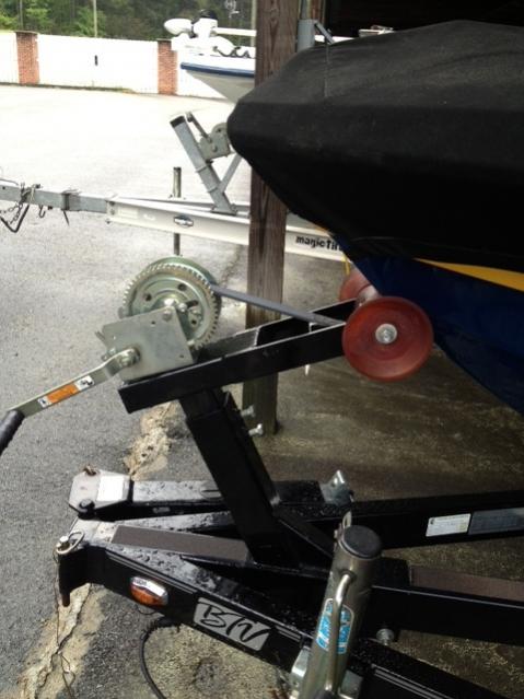 On my Magnum trailer that uses a bow roller/winch there is an additional roller in between the bunks that boosts the bow of the boat up if it needs it. The ramlins have additional set of bunks that basically accomplish the same thing. The boat doesn't touch either of them after its loaded. I can get a picture later today if that doesn't make sense.