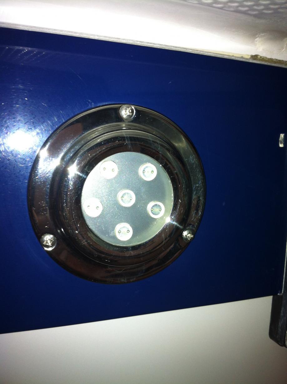 Boat will be in the water Saturday. My old one was 15 watts.... New one is 45. Old one worked well and turned the wake blue easily. Click image for larger version