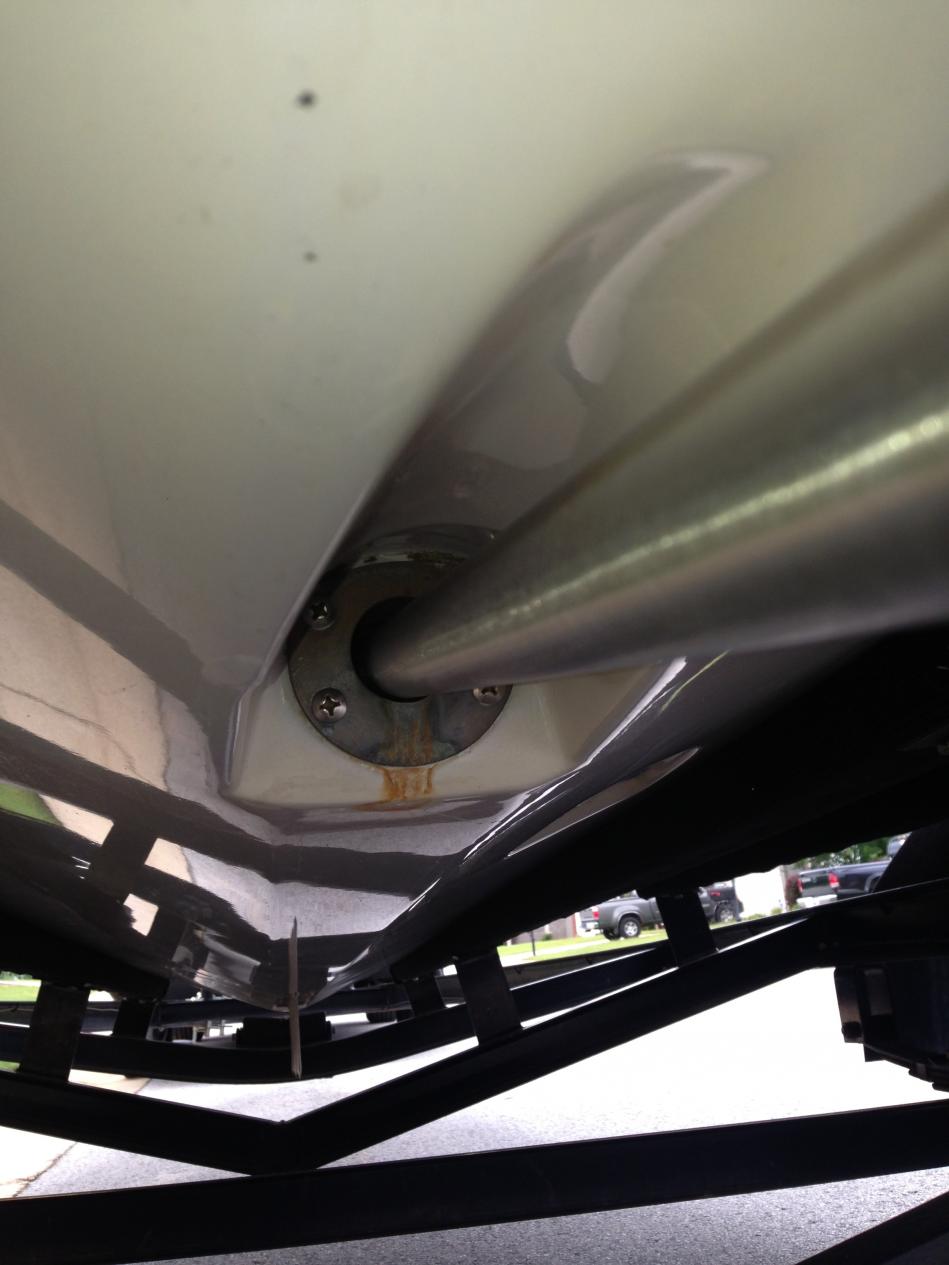 Hi, I'm new to the forum and a proud new Nautique owner. I purchased a 97 Super Sport without test driving (I know bad idea) as I really wanted the boat and got a decent deal, everything seems to be just fine mechanically other than a major water leak at the transmission. In the first pic it seems to be coming in right in front of the brass fitting connecting to the stainless shaft. The second pic is under the boat and it seems it has leaked for some time. Is there a seal in between the two areas that would cause the leak and is this something a novice could possibly fix or will I need to seek my professional mechanic? Thank you for all your help!