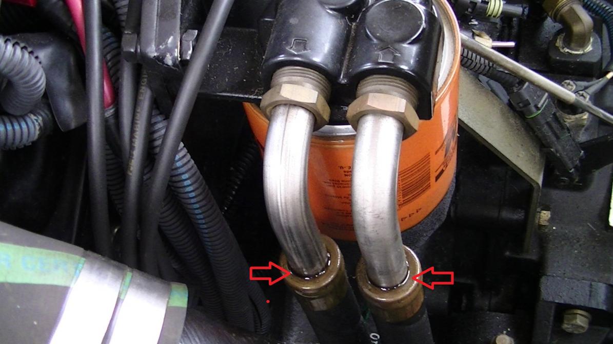 Ref a 2003 SN 196, PCM Excalibur, 5.7L engine. On the remote oil filter lines, oil is starting to leak at the top of the crimped connections (see pic). Is there some way of fixing, tightening, or redoing this connection or do you just need to buy new lines. Cost? Tks,mac