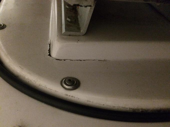 Well, I've done some research and realize this isn't unique to my boat. It seems other early 211 had this problem. The seat "pan" or floor panel under the driver's seat is cracked in the back left corner. I thought ok, it comes out, remove and take to a fiberglass shop for repair but it evidently is not that easy. I went to talk to the fiberglass shop that our local dealer works with and he said he's done this repair before and has to cut out the pan high near the top because it is big enough and during production put in before the deck went on! Looking at a pretty timely job. Has anyone dealt with this themselves and documented any of it? I couldn't find anything in the search. Here is the crack. Click image for larger version