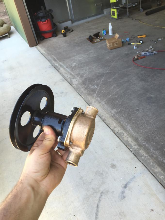 - removed the belt and hoses of the pump, it did seem all very clean, although turning the pump went a bid hard with one hand, with 2 hands on the wheel, it turned making a squeegeeing sound.