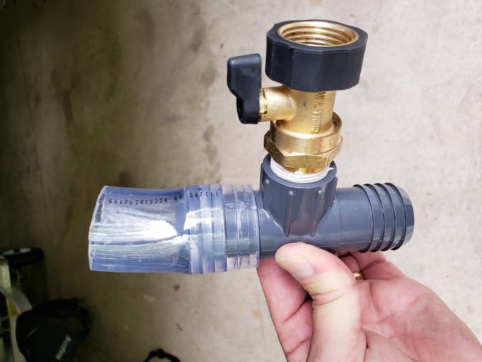 Here's the pic. Clear end to strainer outlet, hose removed from strainer (to water pump) hooked up to other barb. Turn hose on and all water flows backward out through the thru-hull the second the engine starts it pulls it all into the cooling system. Took Sather's advice and just kept it temporary. Less places for a leak. Thanks for all the great tips.Last edited by 03SANTE; 05-15-2019, 07:11 PM.