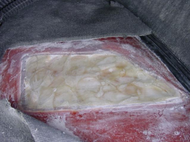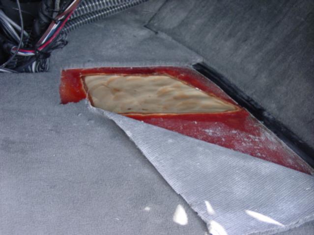 Before I cut the thing entirely out, I made a test cut on the corner. Then i cut about half of it out to be sure there was nothing inside of it. Then I went hog wild and took it down to the deck.