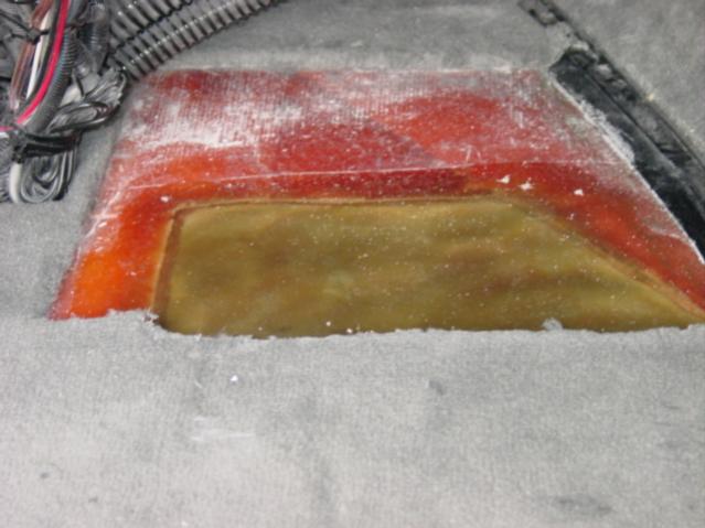 The next few steps will be add additional layers of fiberglass, some the size of the hole, and some larger than the hole. In between layers that have fully cured, I will sand prior to installing additional layers. In all I plan to put down over 15 layers.