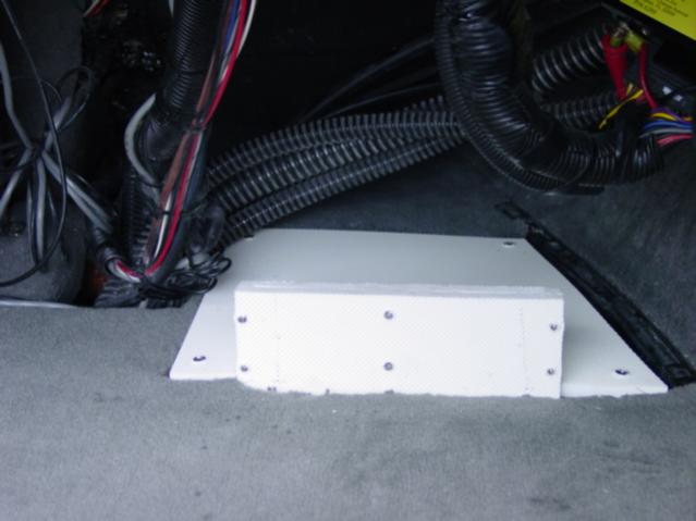 I plan to add more gadgets to my boat in the future, and wanted as much space as possible for them. Plus, I just hatted the lack of acces the hump thing gave me. I had previously test fitted the heater a couple weeks ago, and was just not happy with any of the locations that I had available. Now it is down low, and leaves me more room for electronics, such as CD changer, amps, etc...