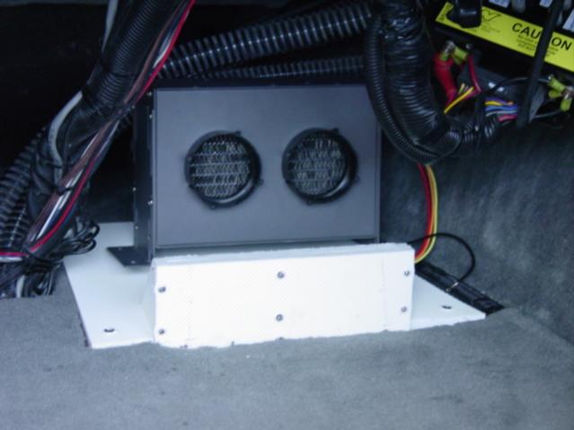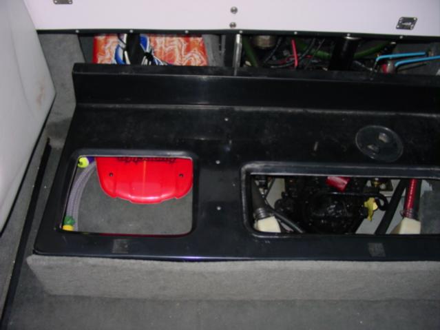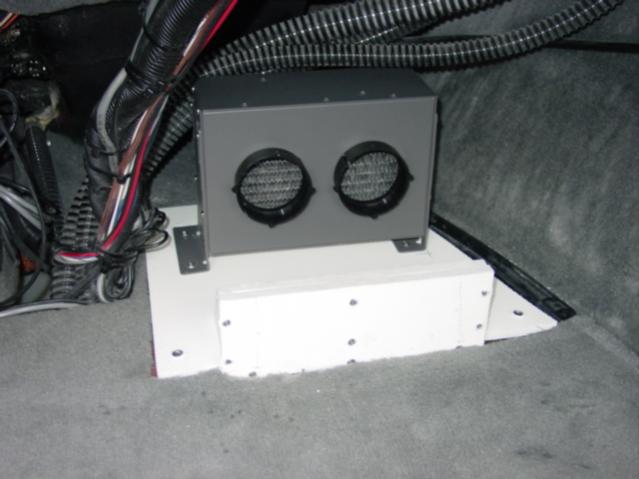 When I redo the stereo, I plan to out some amps behind the throtle and next to the observer's seat. Under the dash will be a high power stereo radio re-broadcaster (FM stereo transmitter), a CD changer, and possibly crossovers etc. I probably will put one sub in a custom seat box behind the driver, and one in a new box under the observer's seat.