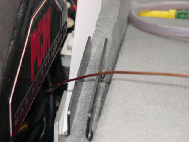 Second, the easy route would be to run them under the gunnel from the rear engine hatch to behind the dash, and just tie them up and out of the way. I really did not like the idea of hot engine water running under my gunnels, so I opted for the hard route, for now.