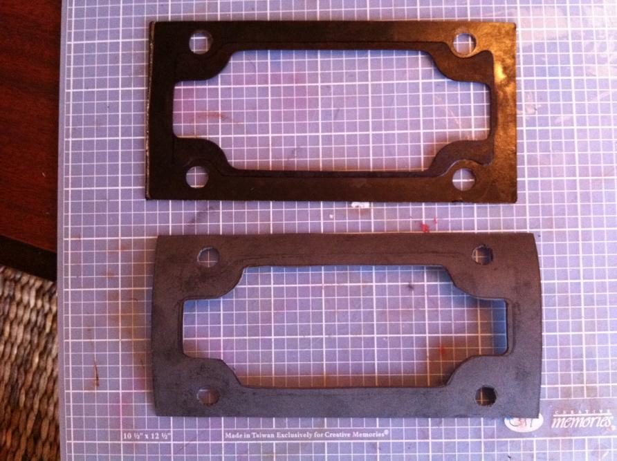 -sheet of gasket material (not sure what I used here, my dad got some scrap pieces from his work, says they are $1200/yard and used in high temp industrial applications, good to 600F). Other gasket material could be found at any auto parts store, or online. The actual gasket is only about 8" long by 3.5" wide, so you don't need much.