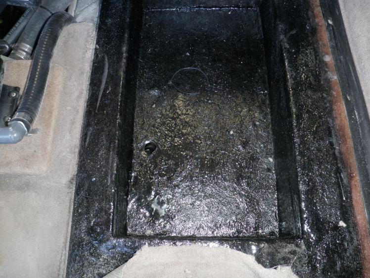 7. Since I wanted to make it look as stock as possible I glassed the bottom and the sides with several layers of 6 oz. cloth, then covered with three layers of resin pigmented black.
