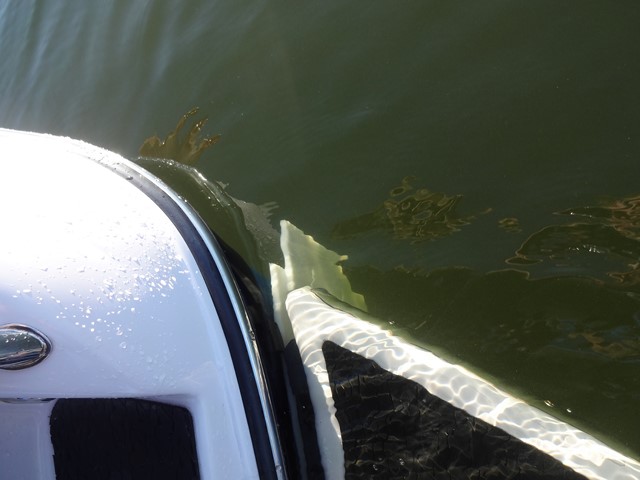 Here is a shot of what it looks like deployed when in the water, looking down from my swim platform.