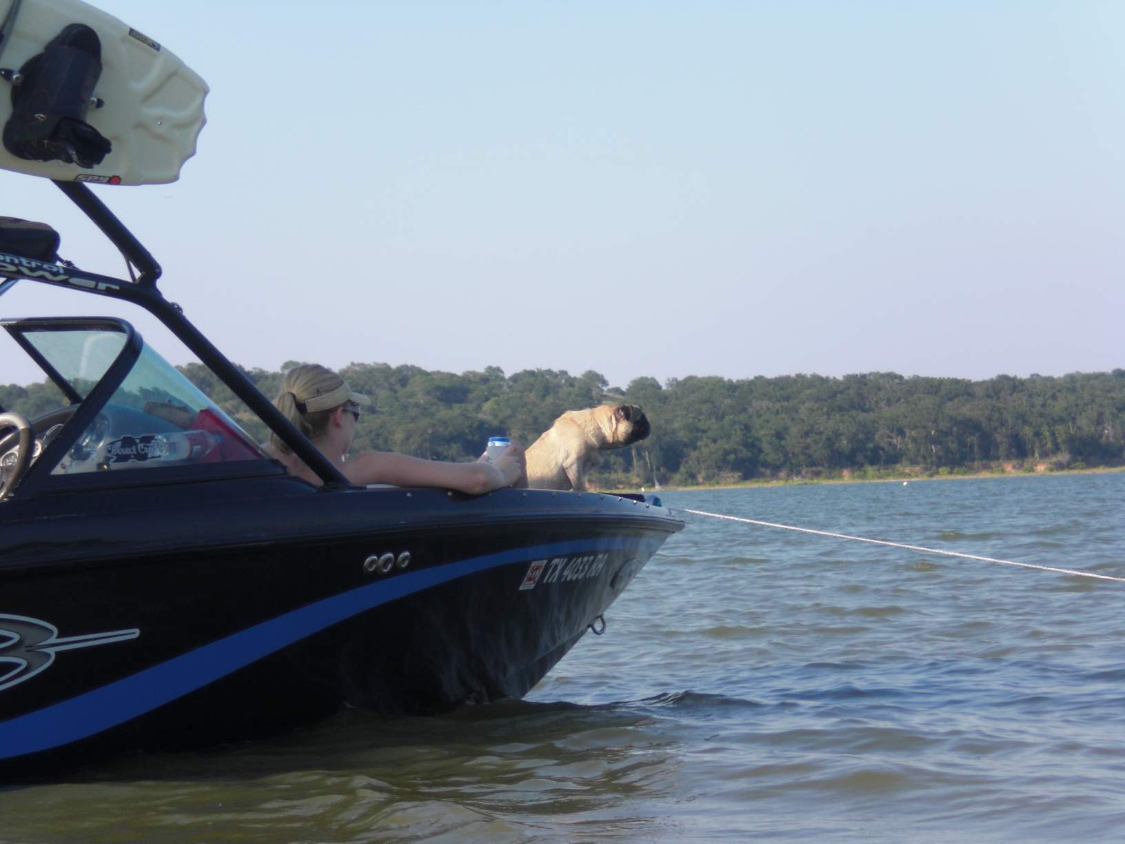 Pugs aren't the strongest swimmers, but they enjoy being on the boat.
