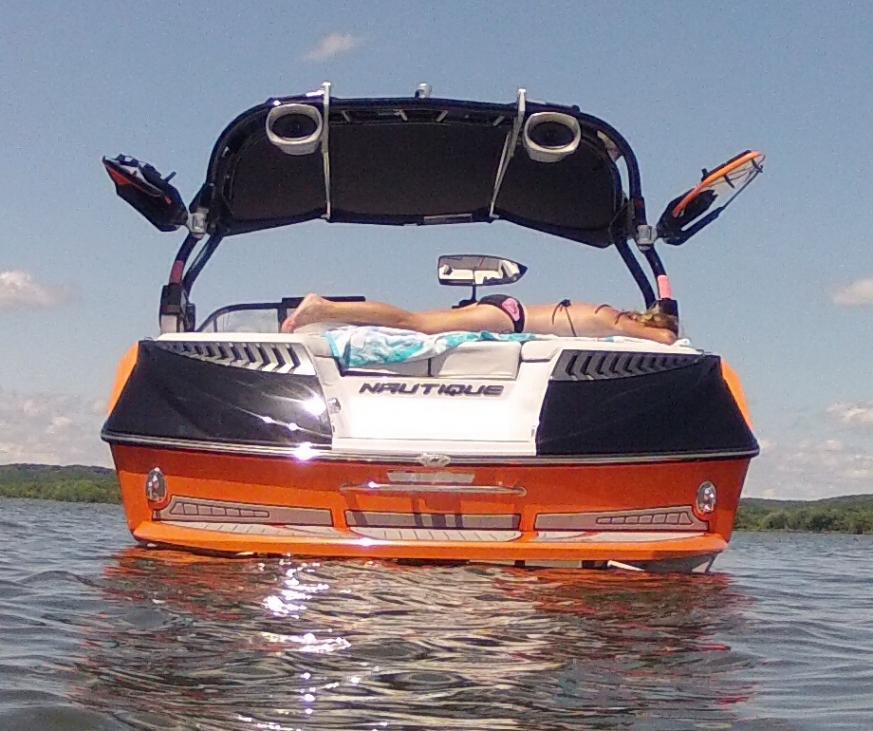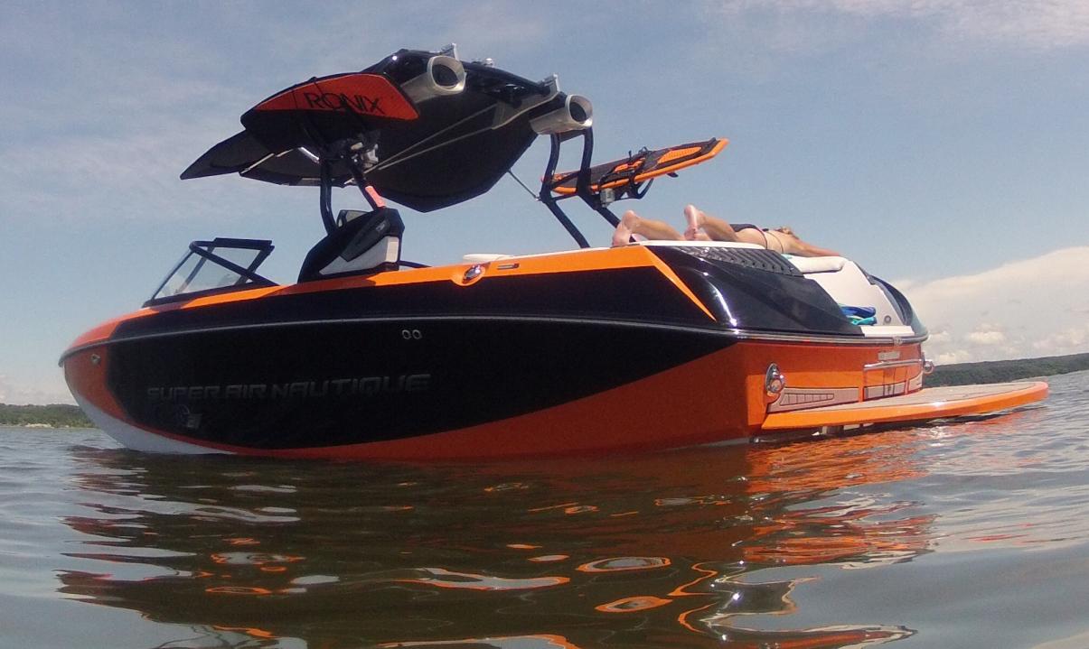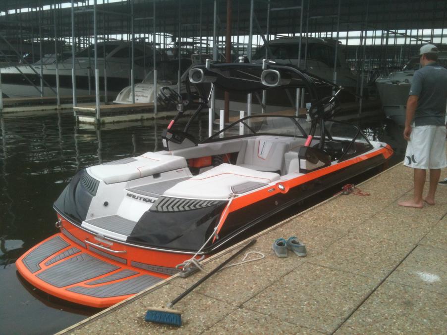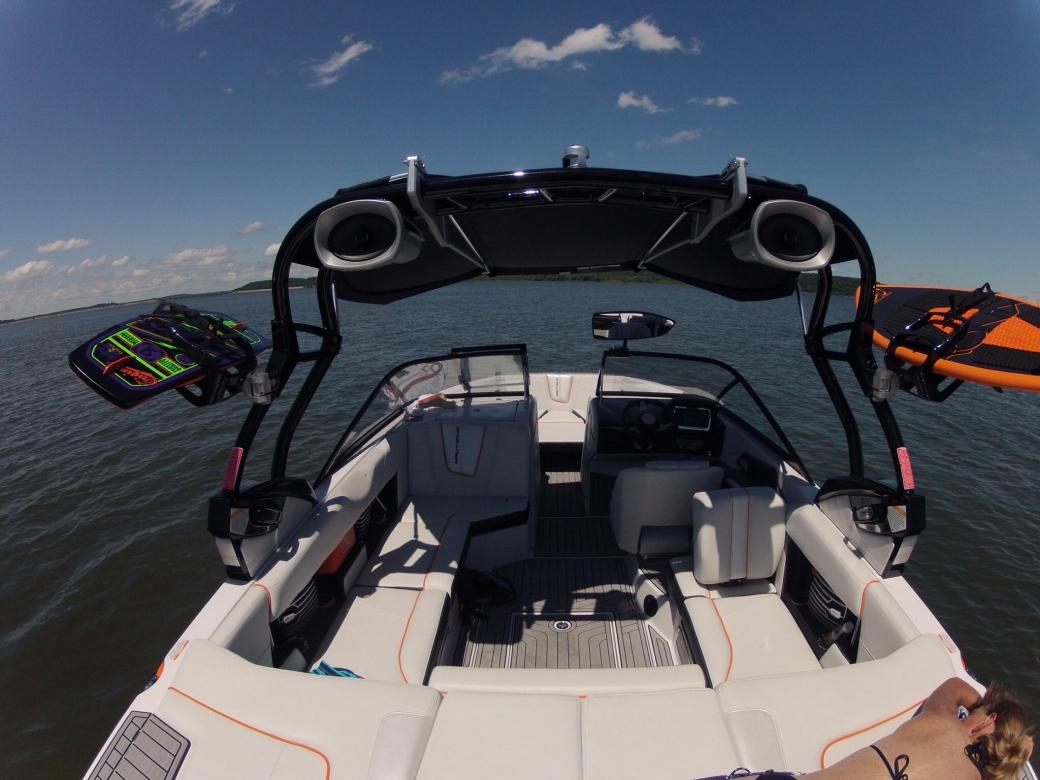 Here are some better pics on the water. So far can't find much of anything don't love about the boat. Surf wave is great with just my wife driving and stock ballast. Wakeboard wake is very clean even at slower speeds.