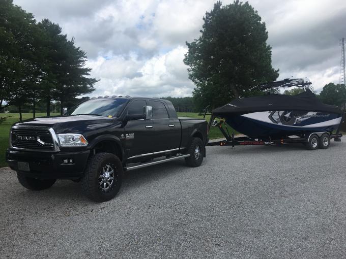 Great looking tow vehicle also, I'm guessing that Ram with the Cummins has no problem towing your boat.