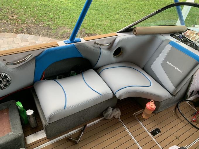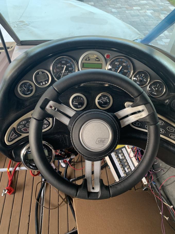Nice work! I think that steering wheel and vinyl and seadek looks great! Really updated the boat
