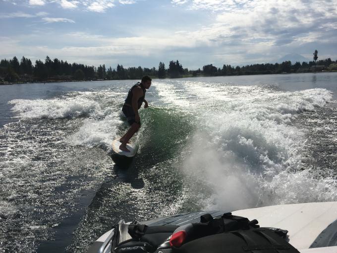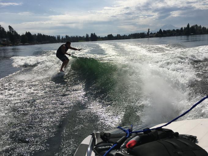 Here is the wave on my 98 SS. Took out the hard tanks, replaced with WM pumps. Im running WM 910s on each side of the engine and a 560 in the belly with a homemade surf device. We sometimes run some bow weight depending on how many people we have onboard. The speed is 10.5 - 11 on the stargazer. Dont forget you can shape your wave for how you like it, more weight in the back equals taller wave which is good for traditional surfing. More weight in the belly to bow equals a shorter harder wave which is good for skim style. Also play around with wave shaper placement!