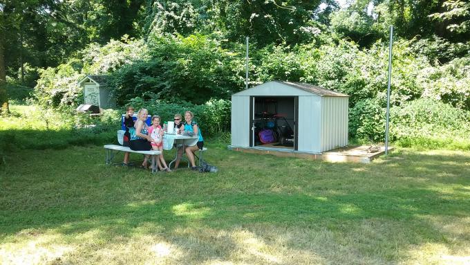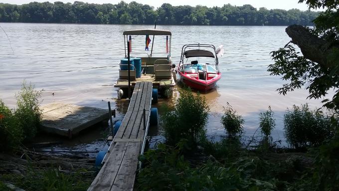 I thought I would post some pictures of my campsite work last weekend. We have a spot on an island in the river. So we need to drag supplies and tools out to the campsite and then bring everything back. We loaded up the Nautique and the pontoon dock (boat) and off we went. Nearly sank the pontoon on the first trip. Then again with 15 bags of concrete on the second trip. Here we go...