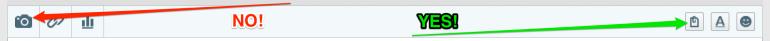 For now, instead of using the camera button (left side), please use the ATTACHMENT button (right side) to upload pictures.