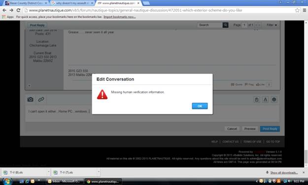 I will try to do that. Although, not sure I know how to take a screen shot with my laptop. Btw, it only seems to happen if I type a long post, several minutes or longer.2007 Malibu Wakesetter 23 LSV, 1995 Cobalt 200
