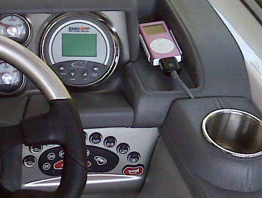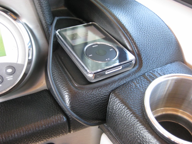 Just moved the hookup of my ipod to the driver's side to get better control of the music. Works great, its clean, and keeps the ipod charged. The picture shows the hookup and my daughter's ipod (no flames on the color please!!!)