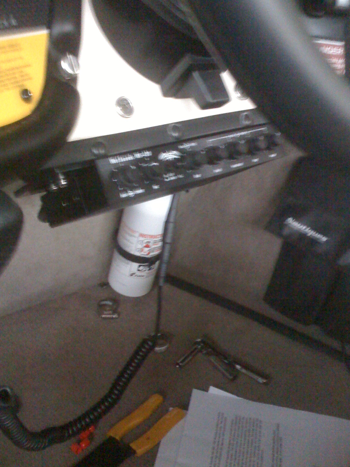 All I can say is HOLY CRAP. They are absolutely unreal. I have not really gotten them totaly tuned yet and they will freekin scream. Every one my lake probably heard my music today while I started setting gains. I got the sub set first, and then the interior set up just right. I am still working on the tower though. I keep turning up the gain to find the spot it starts to give and have not gotten there yet. I am only at about a third on the gain so far and it just sounds so perfect. It feels like a rock concert it has so much power. Here are a few pictures of my install. They are crappy phone pics. I will take some more next week when I go back to finish it.