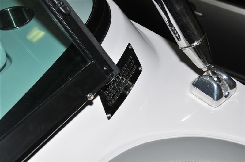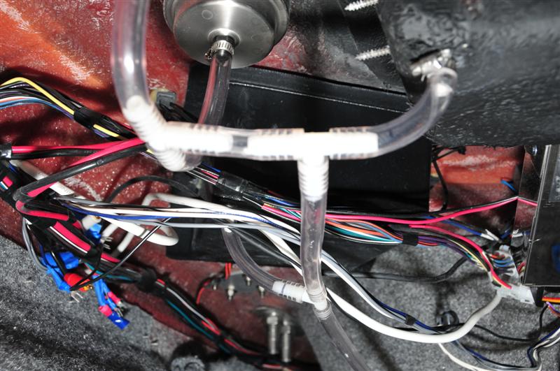 My first question: There is a vent in front of the windshield. Under that vent (inside the passenger console area) is a black plastic box that is open on the front and close (but unsealed) on three sides. A drain fitting is attached to this box, but it looks clear that water coming in through the vent could easily splash/run out of the box without going down the drain tube. Of course, if this happens, any amps or electronics I have mounted under the console might get wet.