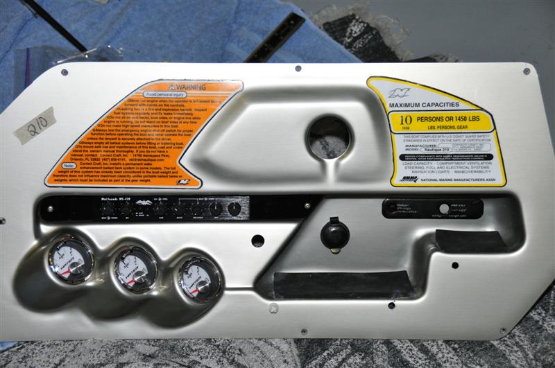 I spent quite a bit of time today on the WS420. As with everything, it takes me twice as long as I think it will. I still have to finish making a bracket behind the panel to hold the WS420 securely, but this is how it looks. I moved the primary power switch and the bilge indicator light and then did some cutting to install the WS420. It doesn't show as well as I'd like because I mounted it against the existing black insert...but you get the idea.