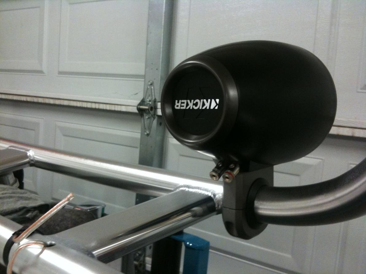 1. Kicker 6 pack (KM6500.2 and KM6500) for the tower with a JL MHD750/1, 4 JL650s and a wetsounds XS-10FA in a box made out of starboard powered by an Alpine PDX-5M. (I have a set of empty kicker dual kmted enclosures already)