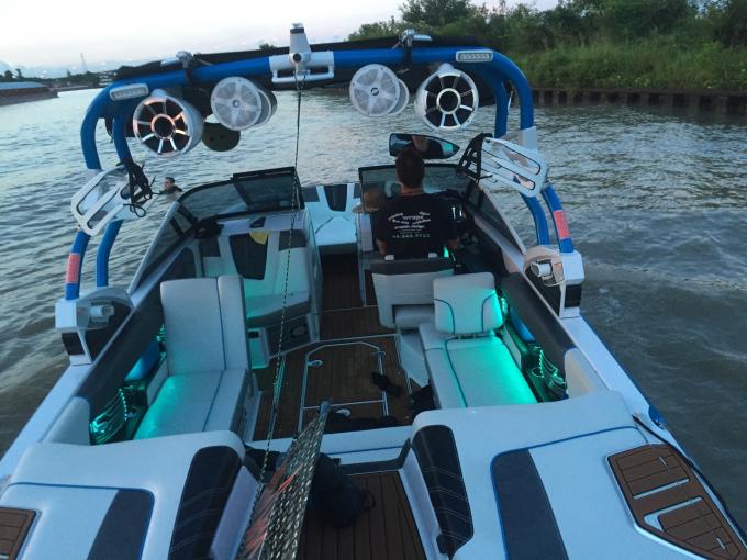 I had 1 12 in a probox ported with port towards back of the boat sub facing to the out side I put a vent that I made to look like the interior speaker covers under the seat and took off garbage door I had more than enough bass and it could be heard everywhere in and out of boat