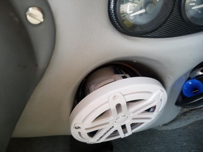 All of the speakers are flush mounted except the one near the driver. Its recessed and too small to get a jl audio speaker in. Does anyone have any suggestions or pics of what you have done? There was a Polk 6.5 in it win I bought the boat...