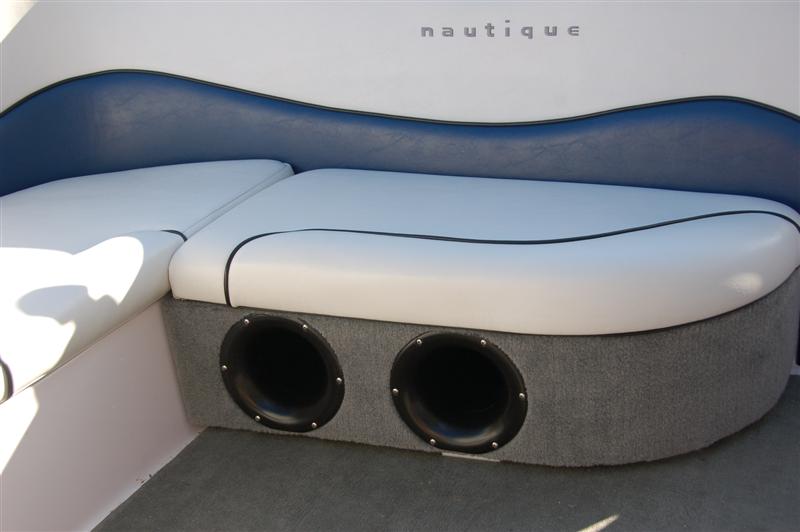 It's a stealthy little box that way outperforms most sealed 12" subwoofers. The placement in the back corner also helps transmit the subwoofer frequencies through the cabin of the boat.