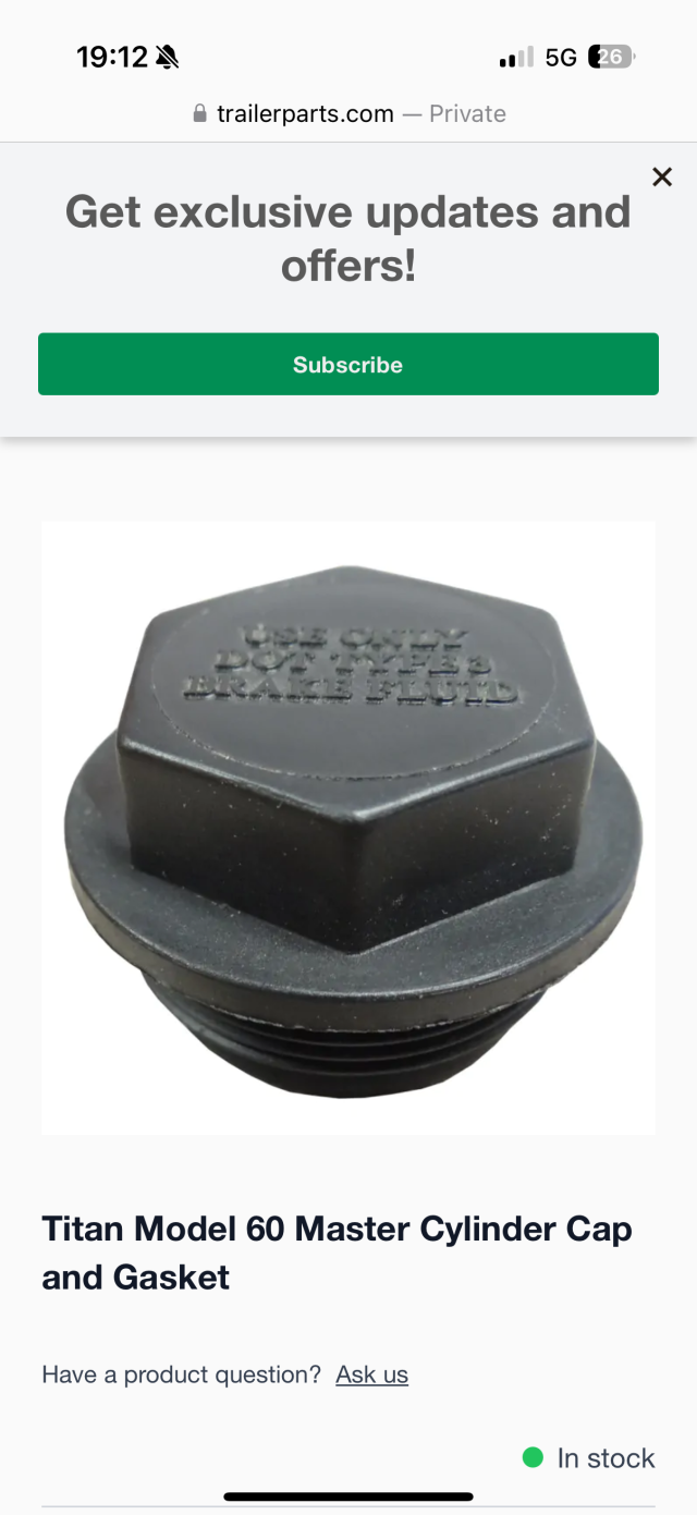 Hi, does anybody know the thread size for the master cylinder cap on a Titan 60? Need to bled the brakes and would rather pressure bleed - in the UK so can’t buy a replacement cap over here…
