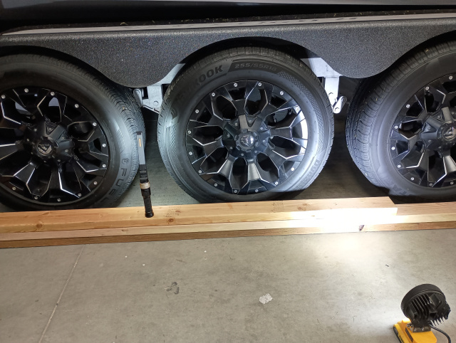 Low & behold, both front & rear are doing the same thing on my trailer. I will say, I have to back in on my final approach to the shop. I would like to see what these look like with a forward tug, also with the boat off, maybe no difference. This one is out of my geometry wheelhouse. Trailer does pull fantastic.